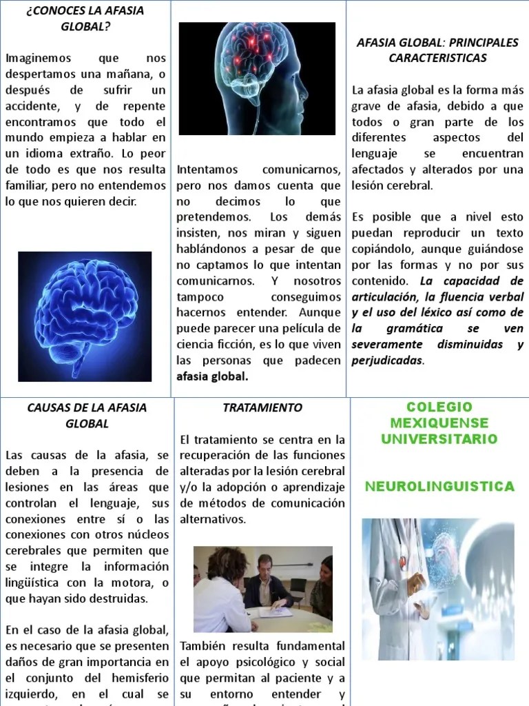 13 hours ago · la afasia es una enfermedad que impide que te comuniques pues dificulta la comprensión del lenguaje. Se trata de la pérdida de capacidad de producir o comprender el lenguaje, debido a lesiones en áreas cerebrales especializadas en estas funciones. Puede afectar el habla, escribir y comprender el lenguaje, tanto verbal como escrito, de acuerdo a la clínica. 16 hours ago · la afasia es una enfermedad que provoca la pérdida de la capacidad de expresar o comprender el lenguaje hablado o escrito, como resultado del daño en las áreas del cerebro que controlan el. El término se aplica a las personas que presentan una incapacidad persistente para nombrar, particularmente sustantivos y verbos.